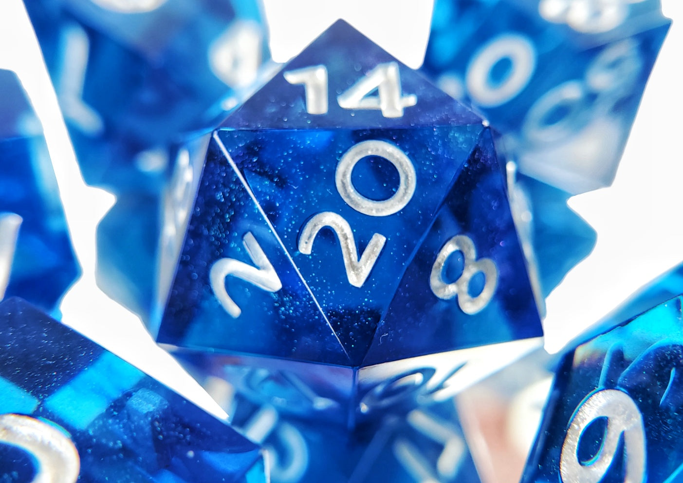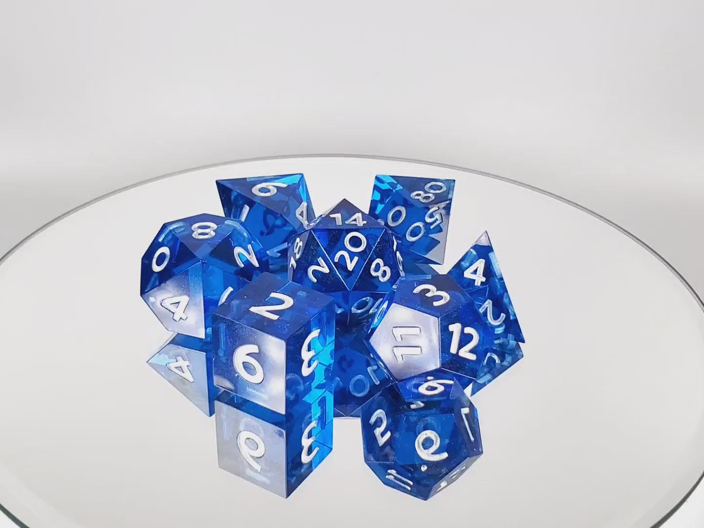*Dice are entirely handmade from start to finish and therefore may have minor imperfections or color variations. Pictures are representative of the color and style but your exact set may vary. Please note color calibration of your screen may also vary. While they are just as balanced as commercially produced dice, it is recommended handmade dice be used for casual play only.