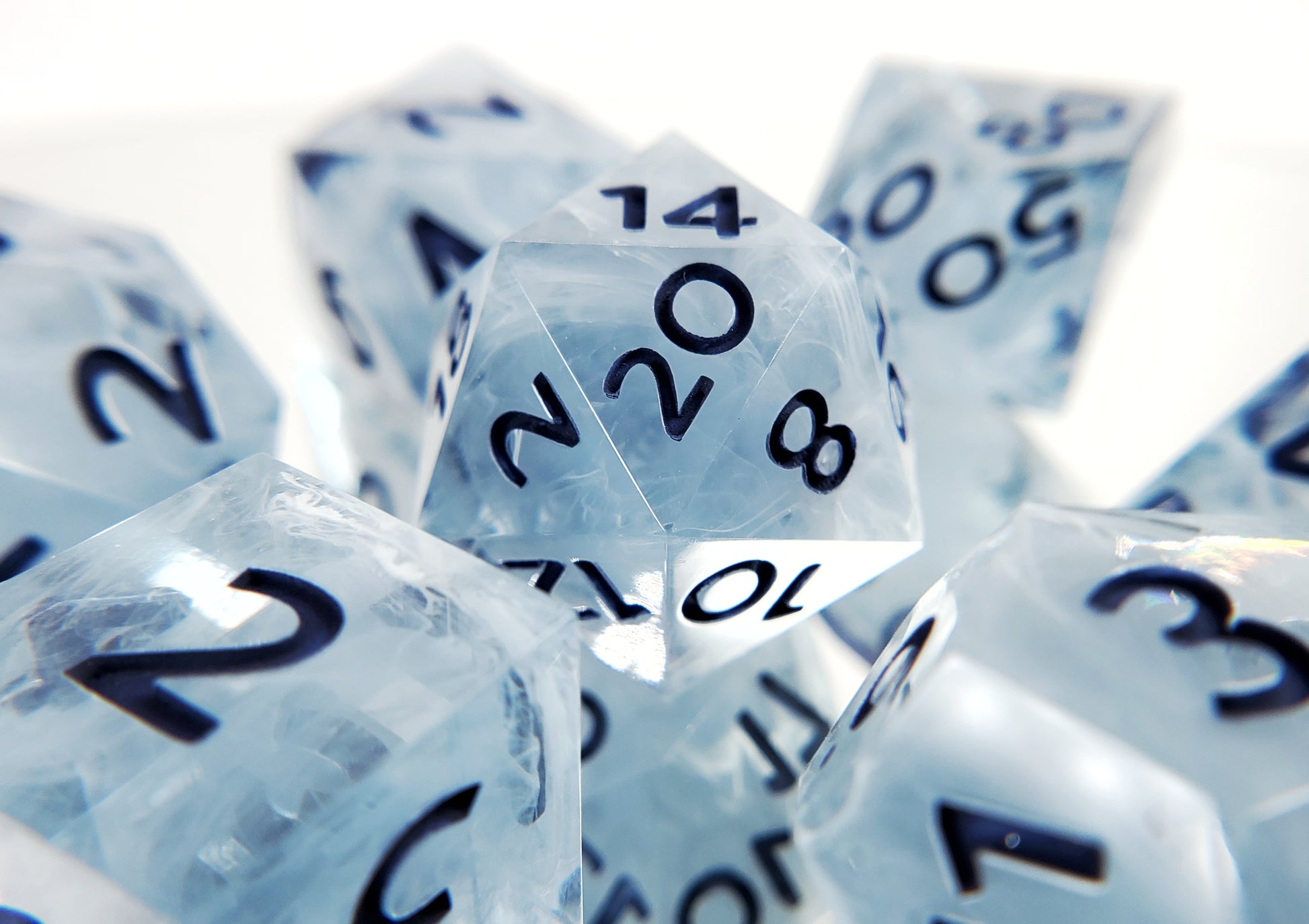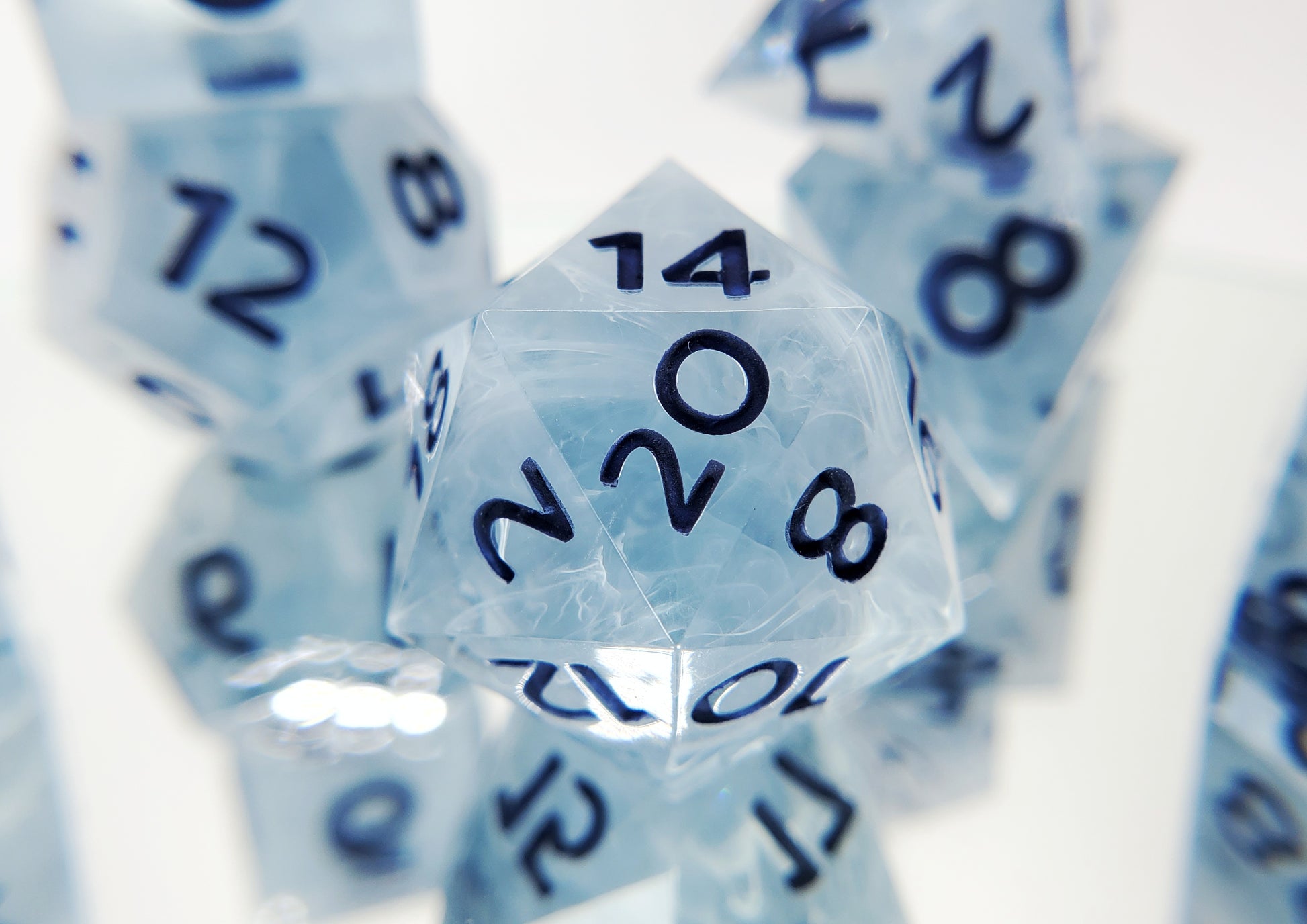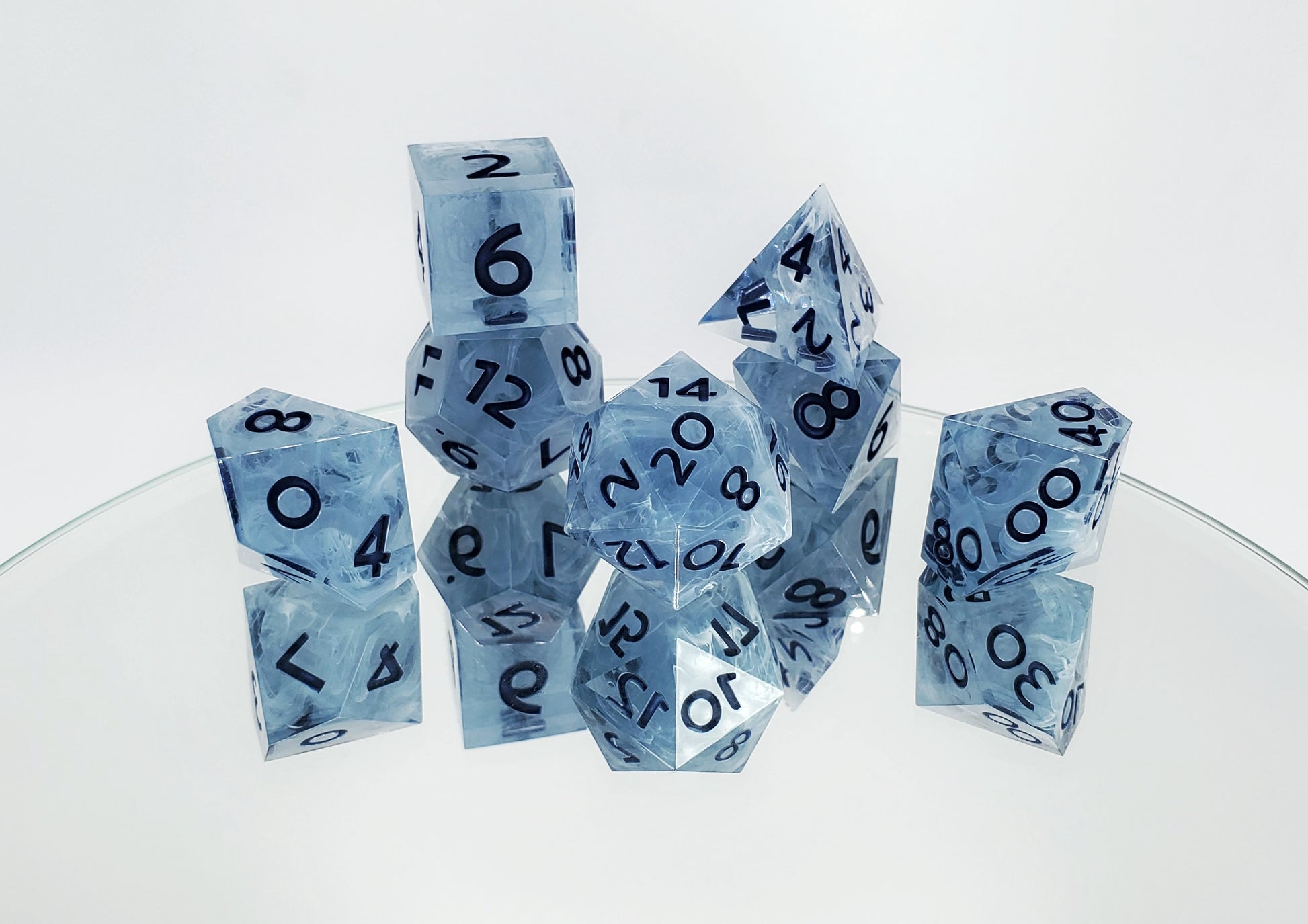 *Dice are entirely handmade from start to finish and therefore may have minor imperfections or color variations. Pictures are representative of the color and style but your exact set may vary. Please note color calibration of your screen may also vary. While they are just as balanced as commercially produced dice, it is recommended handmade dice be used for casual play only.
