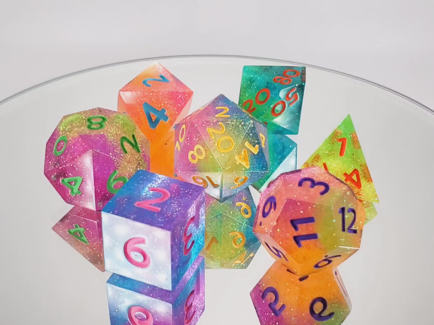 *Dice are entirely handmade from start to finish and therefore may have minor imperfections or color variations. Pictures are representative of the color and style but your exact set may vary. Please note color calibration of your screen may also vary. While they are just as balanced as commercially produced dice, it is recommended handmade dice be used for casual play only.