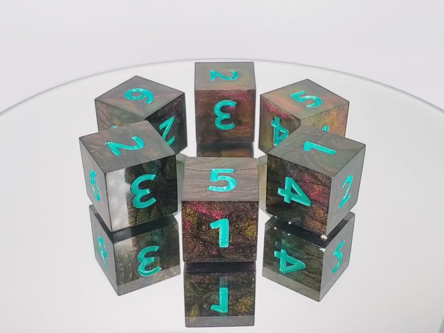 *Dice are entirely handmade from start to finish and therefore may have minor imperfections or color variations. Pictures are representative of the color and style but your exact set may vary. Please note color calibration of your screen may also vary. While they are just as balanced as commercially produced dice, it is recommended handmade dice be used for casual play only.