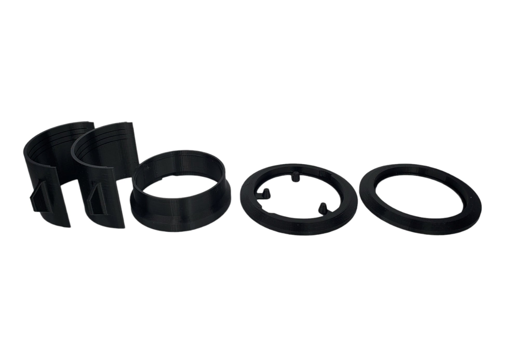 Each set comes with 2 body halves, a registration ring, a stability ring, and a cap band. No additional clips, tape, or rubber bands are needed to assemble the mold housing or keep it together during use.