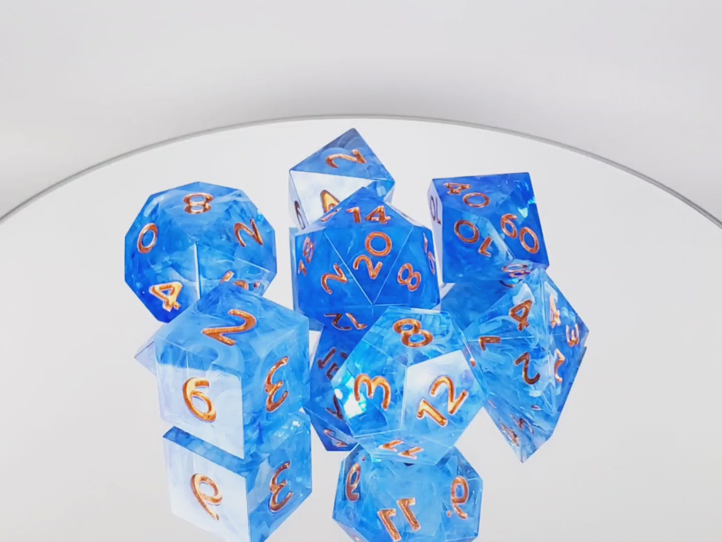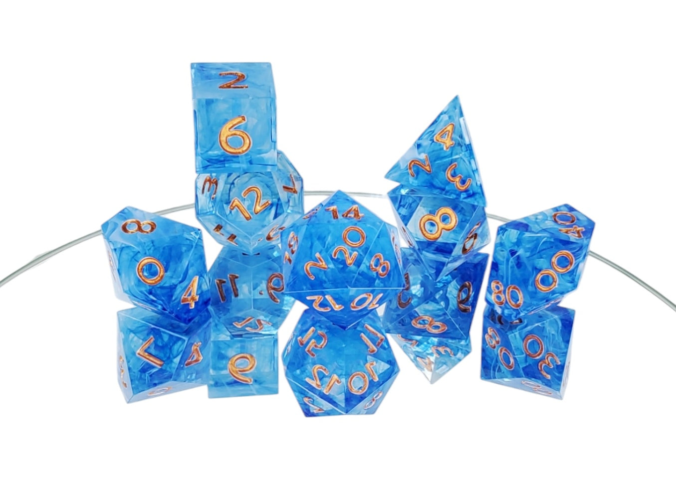 *Dice are entirely handmade from start to finish and therefore may have minor imperfections or color variations. Pictures are representative of the color and style but your exact set may vary. Please note color calibration of your screen may also vary. While they are just as balanced as commercially produced dice, it is recommended handmade dice be used for casual play only.