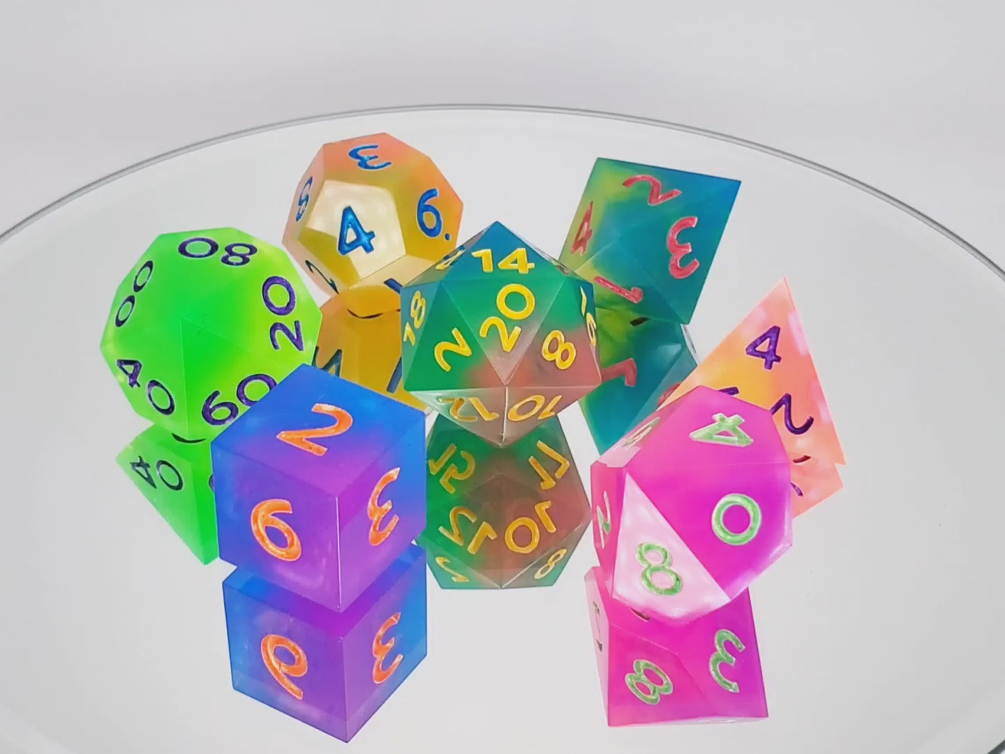 *Dice are entirely handmade from start to finish and therefore may have minor imperfections or color variations. Pictures are representative of the color and style but your exact set may vary. Please note color calibration of your screen may also vary. While they are just as balanced as commercially produced dice, it is recommended handmade dice be used for casual play only.