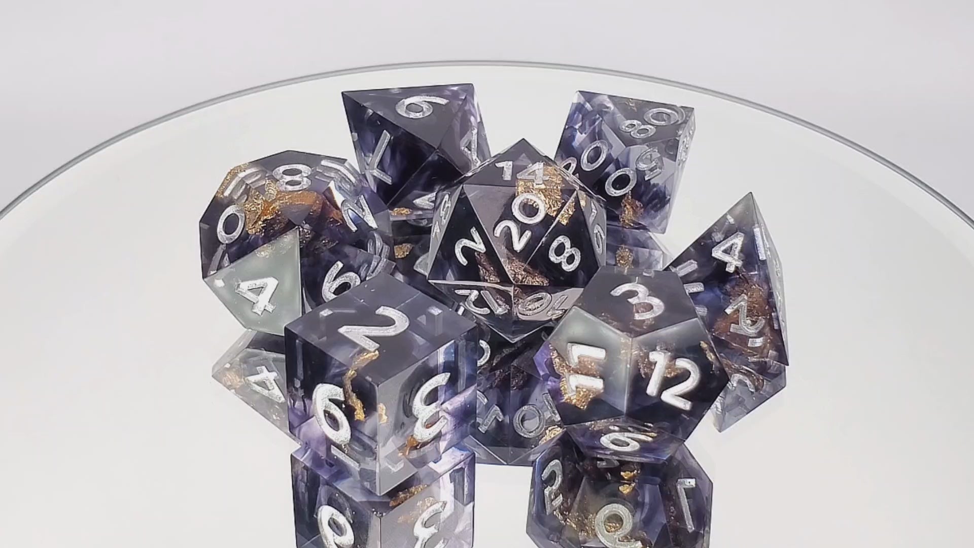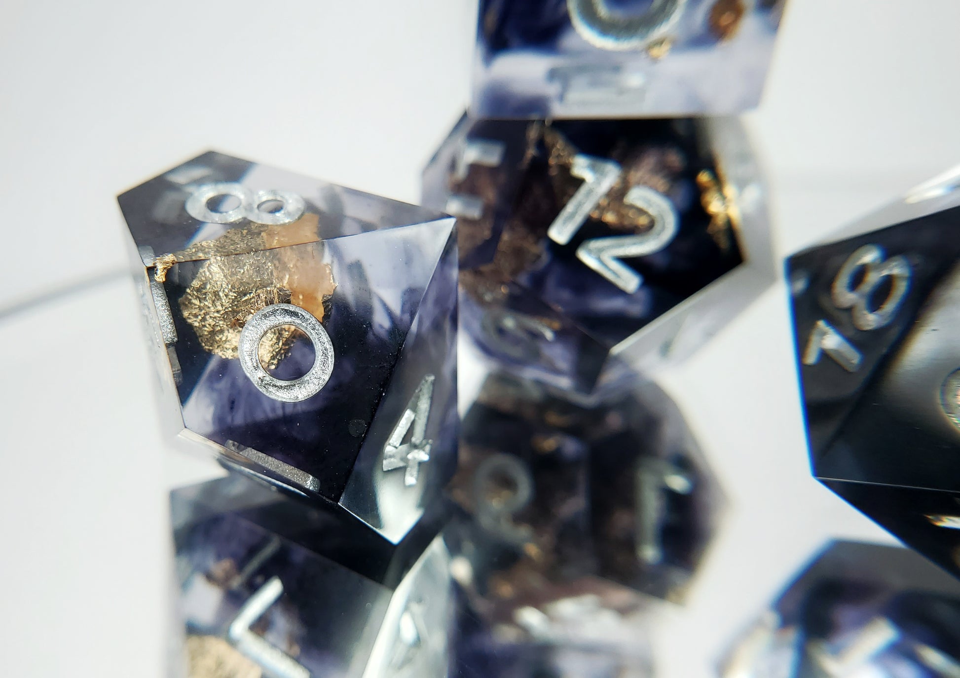 *Dice are entirely handmade from start to finish and therefore may have minor imperfections or color variations. Pictures are representative of the color and style but your exact set may vary. Please note color calibration of your screen may also vary. While they are just as balanced as commercially produced dice, it is recommended handmade dice be used for casual play only.