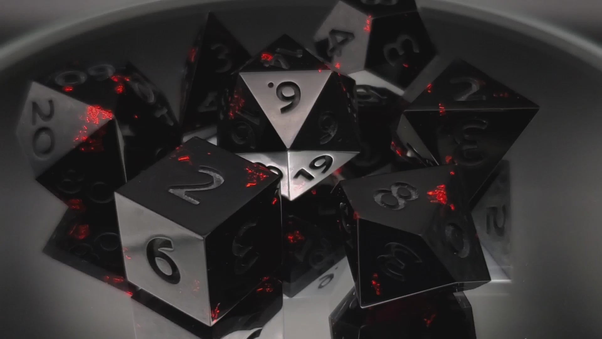 *Dice are entirely handmade from start to finish and therefore may have minor imperfections or color variations. Pictures are representative of the color and style but your exact set may vary. Please note color calibration of your screen may also vary. While they are just as balanced as commercially produced dice, it is recommended handmade dice be used for casual play only.