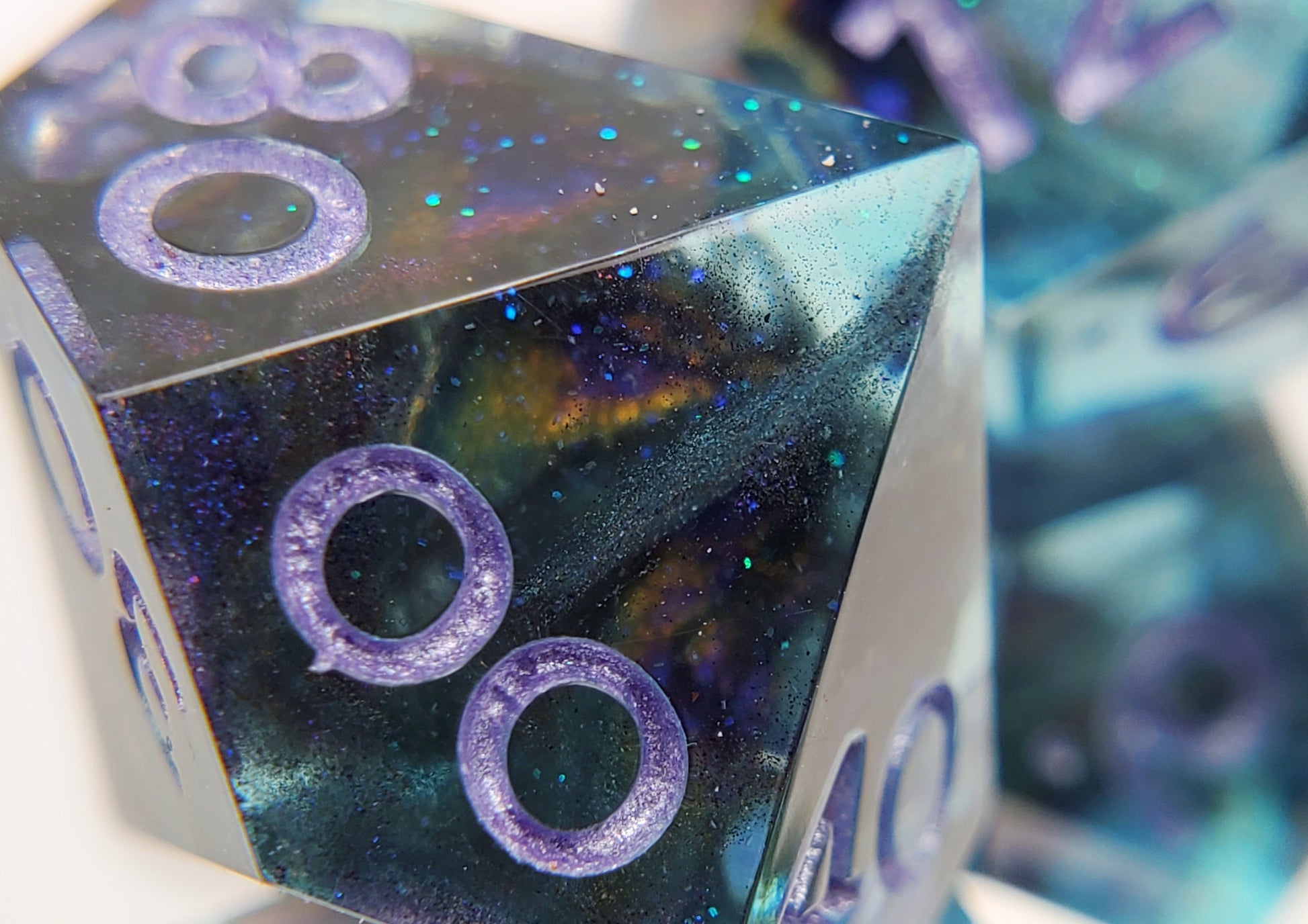 *Dice are entirely handmade from start to finish and therefore may have minor imperfections or color variations. Pictures are representative of the color and style but your exact set may vary. Please note color calibration of your screen may also vary. While they are just as balanced as commercially produced dice, it is recommended handmade dice be used for casual play only.