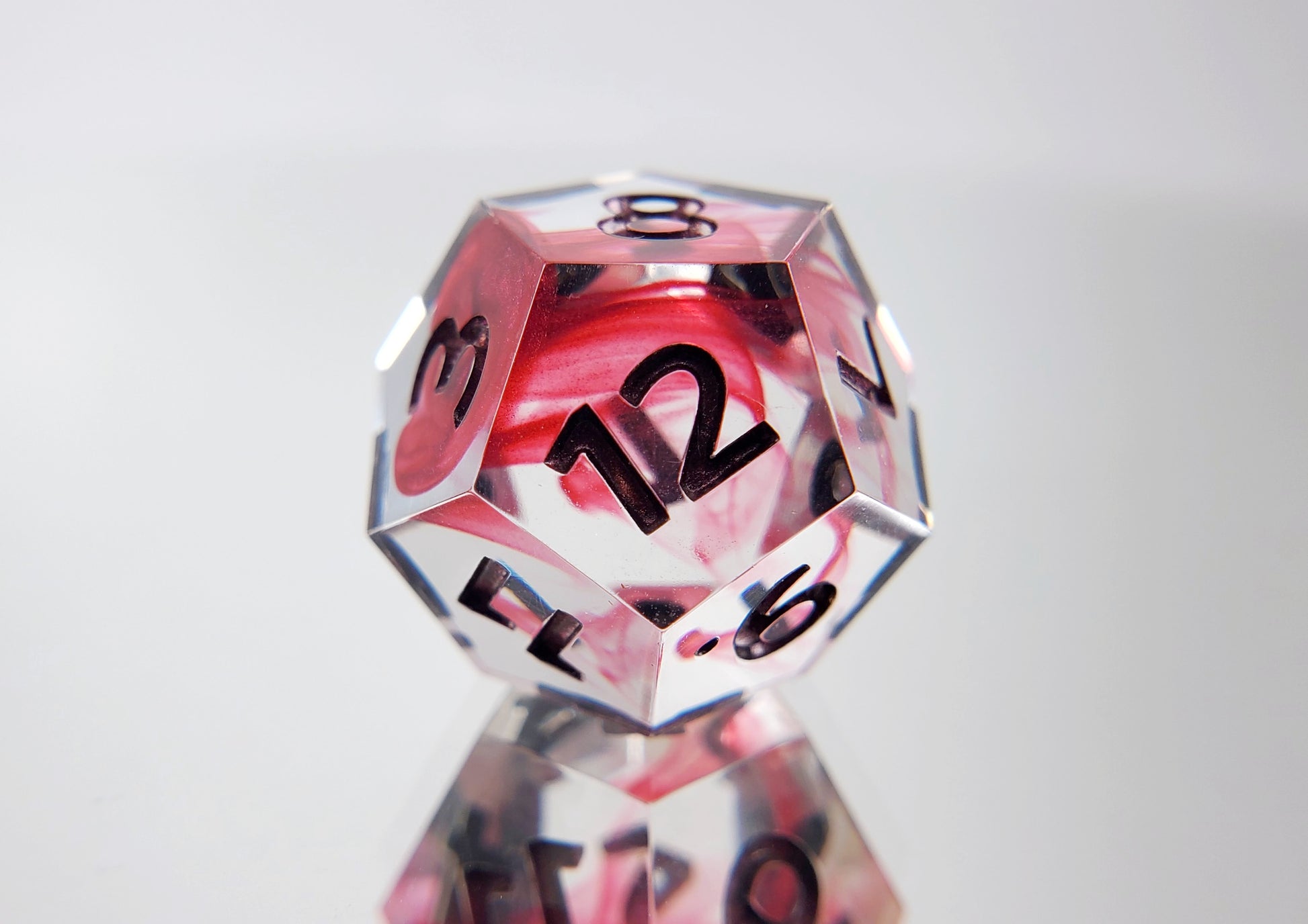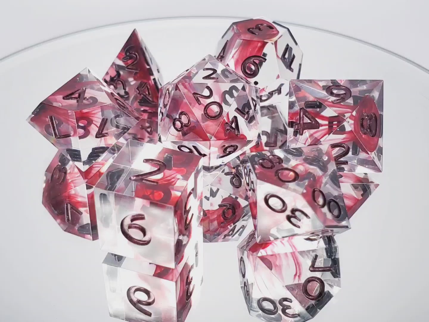 *Dice are entirely handmade from start to finish and therefore may have minor imperfections or color variations. Pictures are representative of the color and style but your exact set may vary. Please note color calibration of your screen may also vary. While they are just as balanced as commercially produced dice, it is recommended handmade dice be used for casual play only.