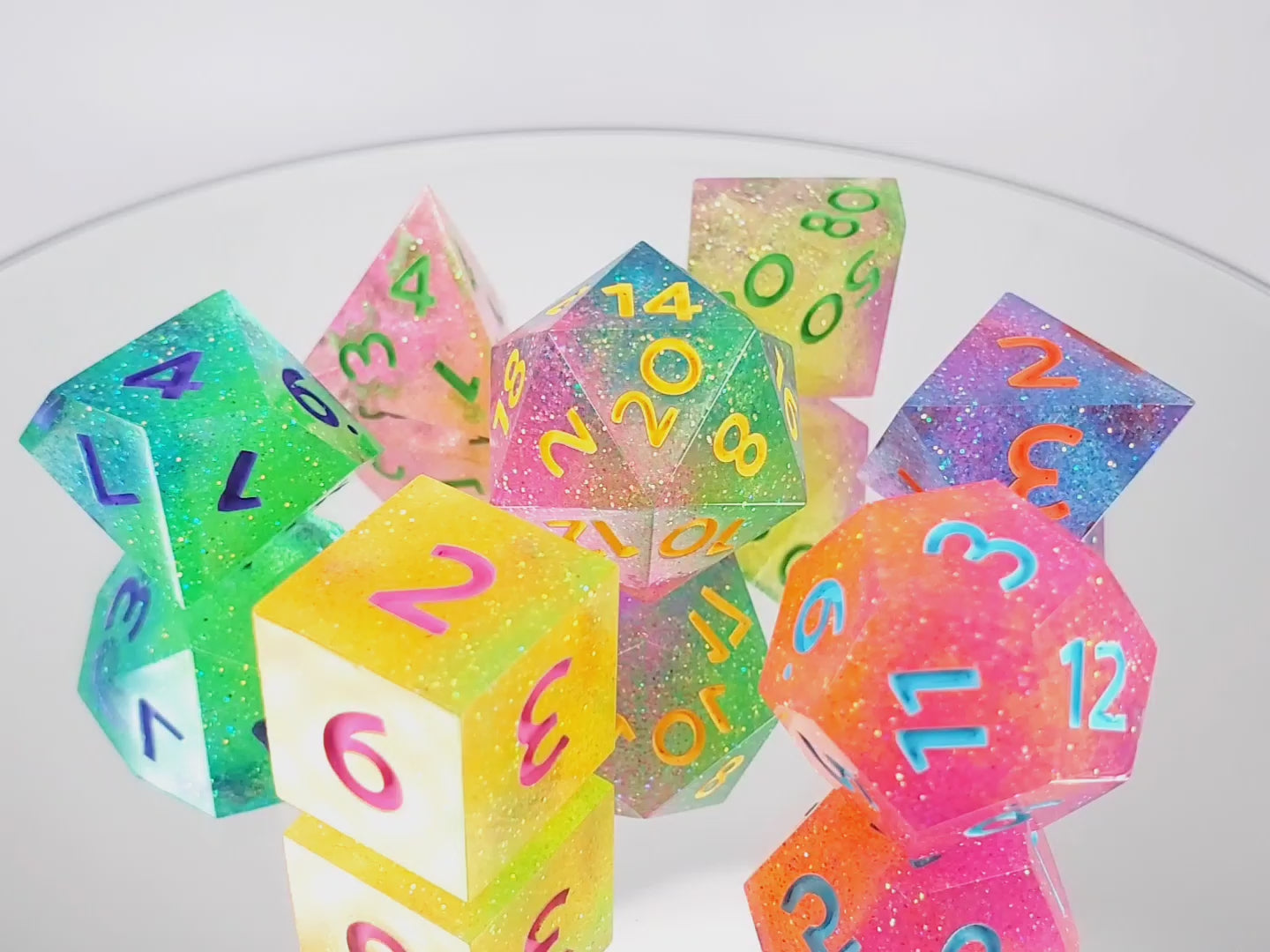 *Dice are entirely handmade from start to finish and therefore may have minor imperfections or color variations. Pictures are representative of the color and style but your exact set may vary. Please note color calibration of your screen may also vary. While they are just as balanced as commercially produced dice, it is recommended handmade dice be used for casual play only.
