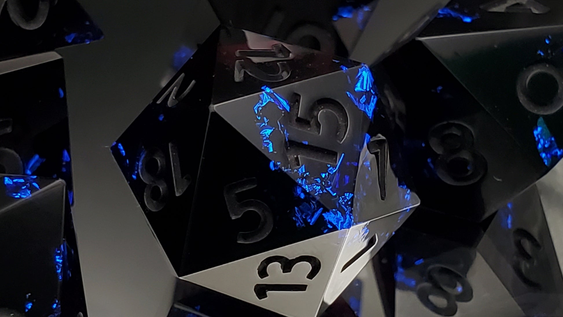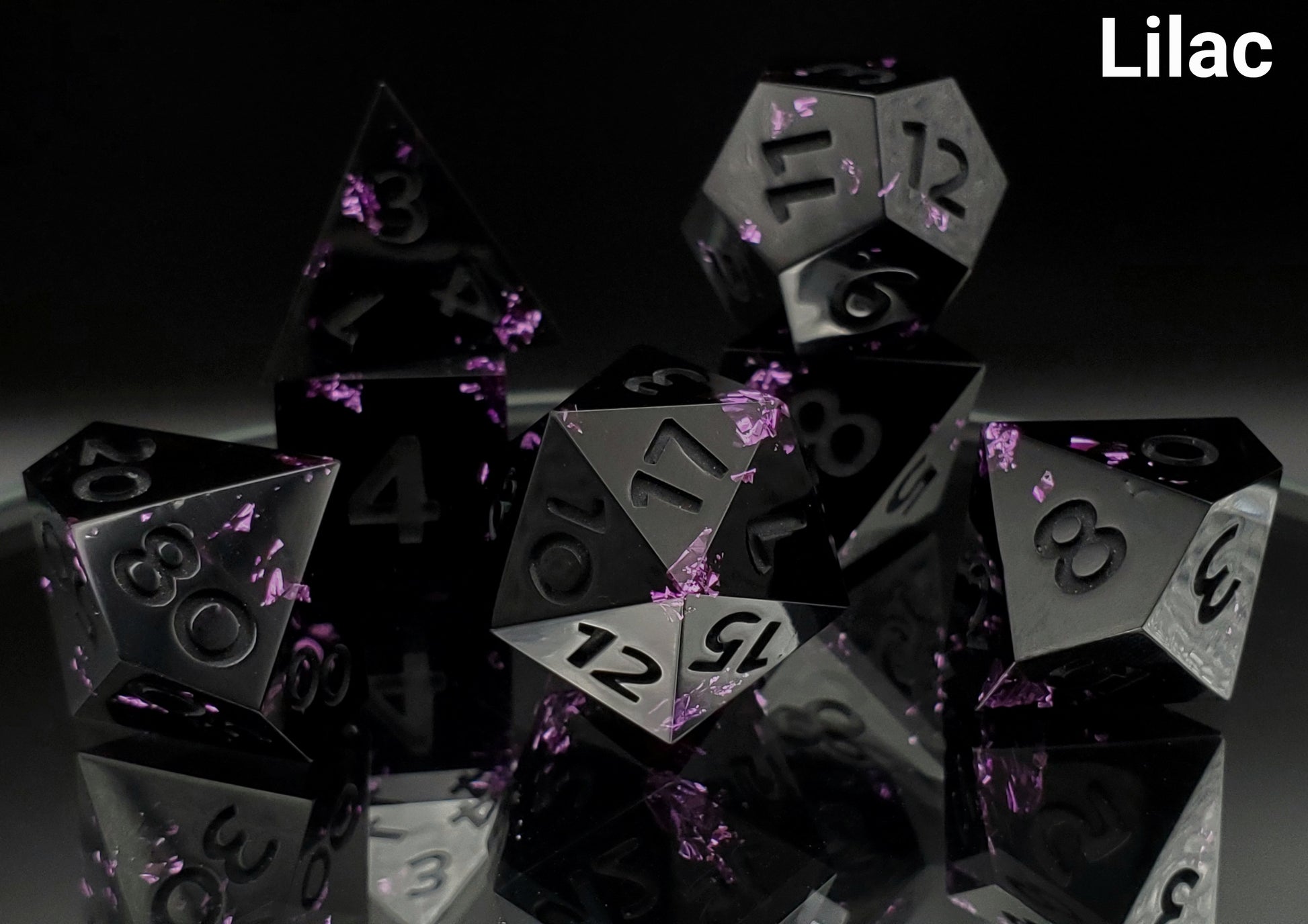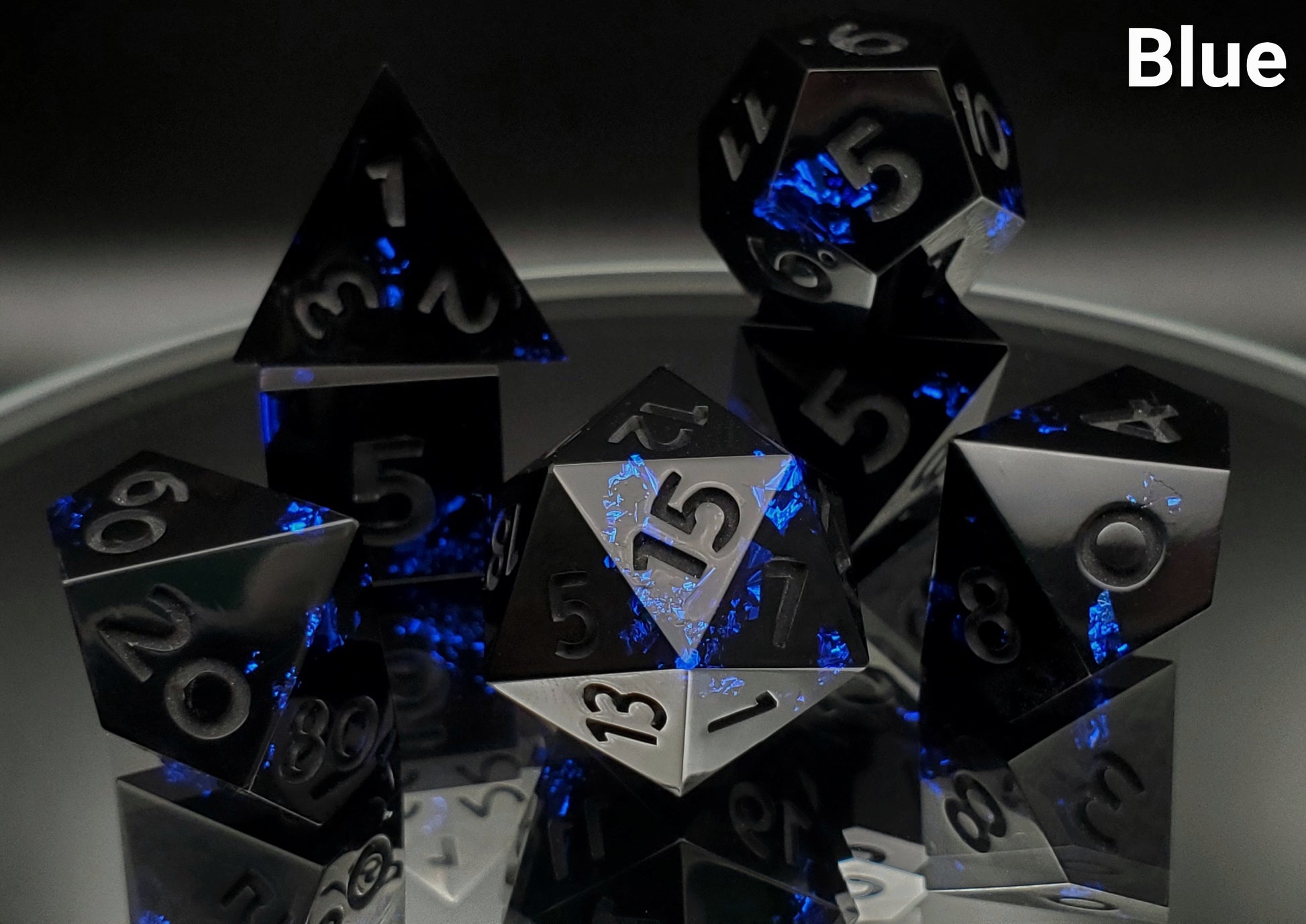 *Dice are entirely handmade from start to finish and therefore may have minor imperfections or color variations. Pictures are representative of the color and style but your exact set may vary. Please note color calibration of your screen may also vary. While they are just as balanced as commercially produced dice, it is recommended handmade dice be used for casual play only.
