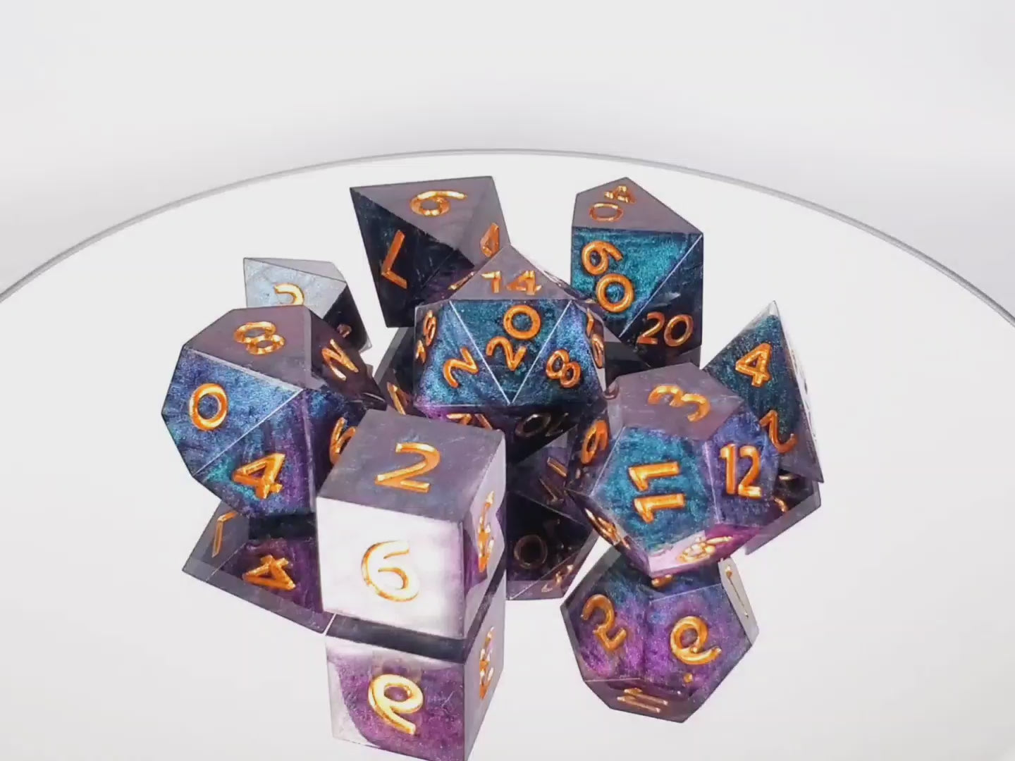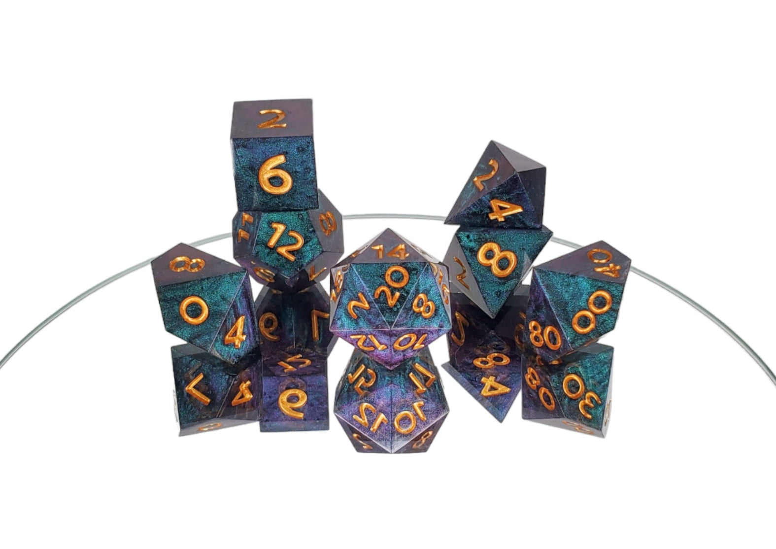 *Dice are entirely handmade from start to finish and therefore may have minor imperfections or color variations. Pictures are representative of the color and style but your exact set may vary. Please note color calibration of your screen may also vary. While they are just as balanced as commercially produced dice, it is recommended handmade dice be used for casual play only.